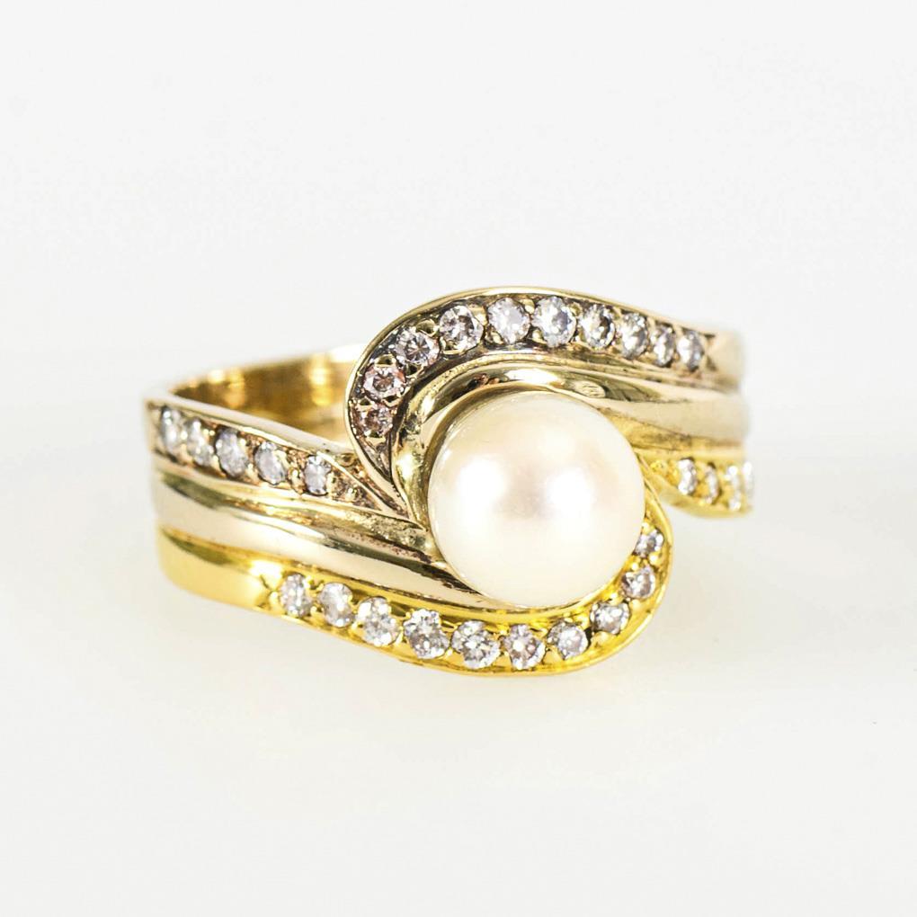 Ring mit Zuchtperle und Brillanten.