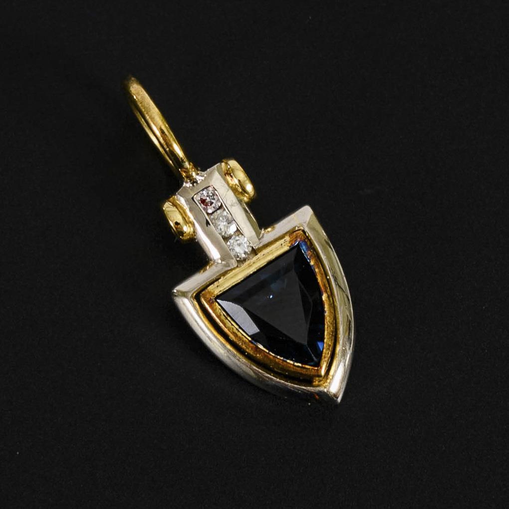 2-farbiger Anhänger mit zargengefasstem Iolith? und 3 kleinen eingelassenen Brillanten. Starre Ringöse.