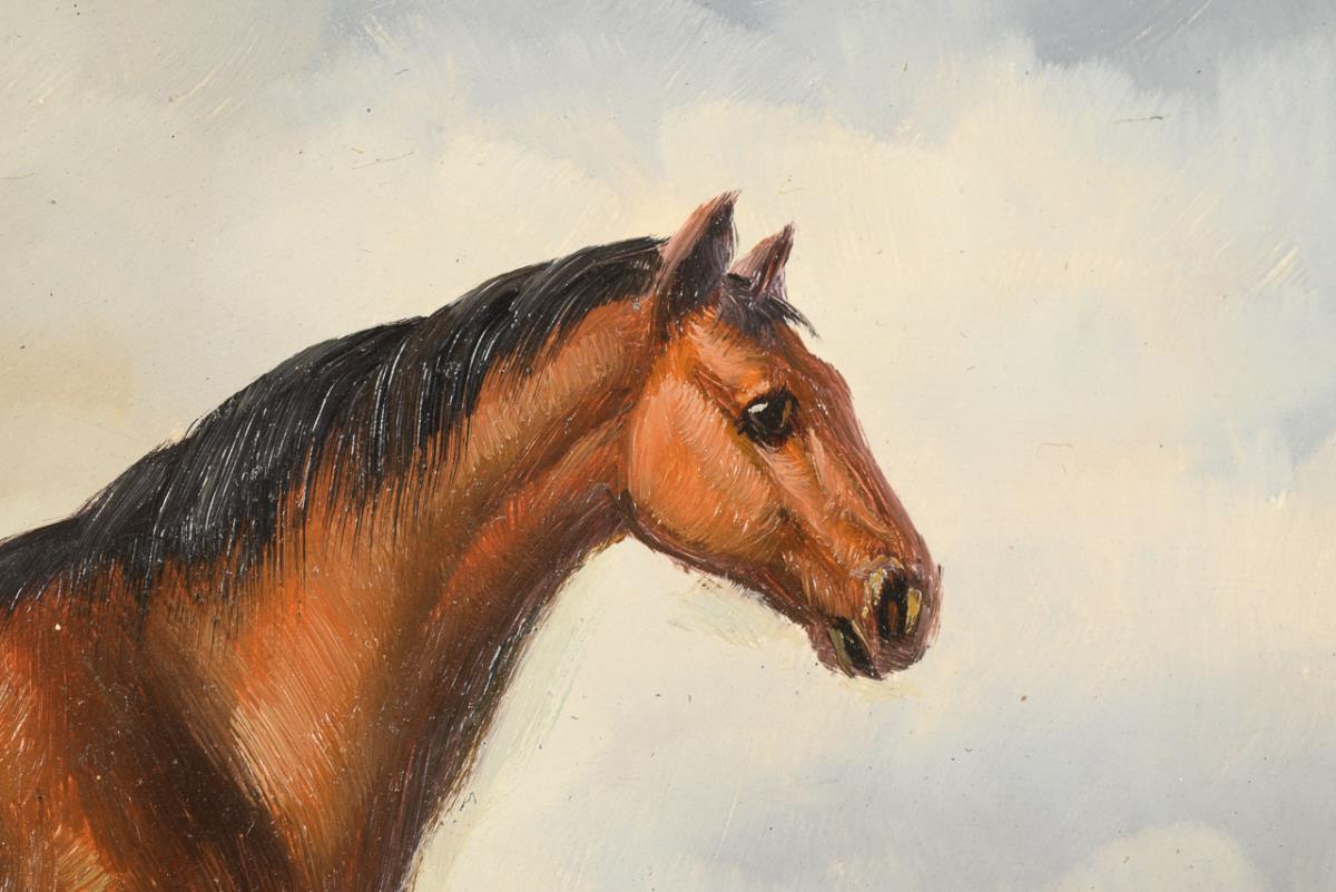 Zwei Pferdedarstellungen in weiter Landschaft.