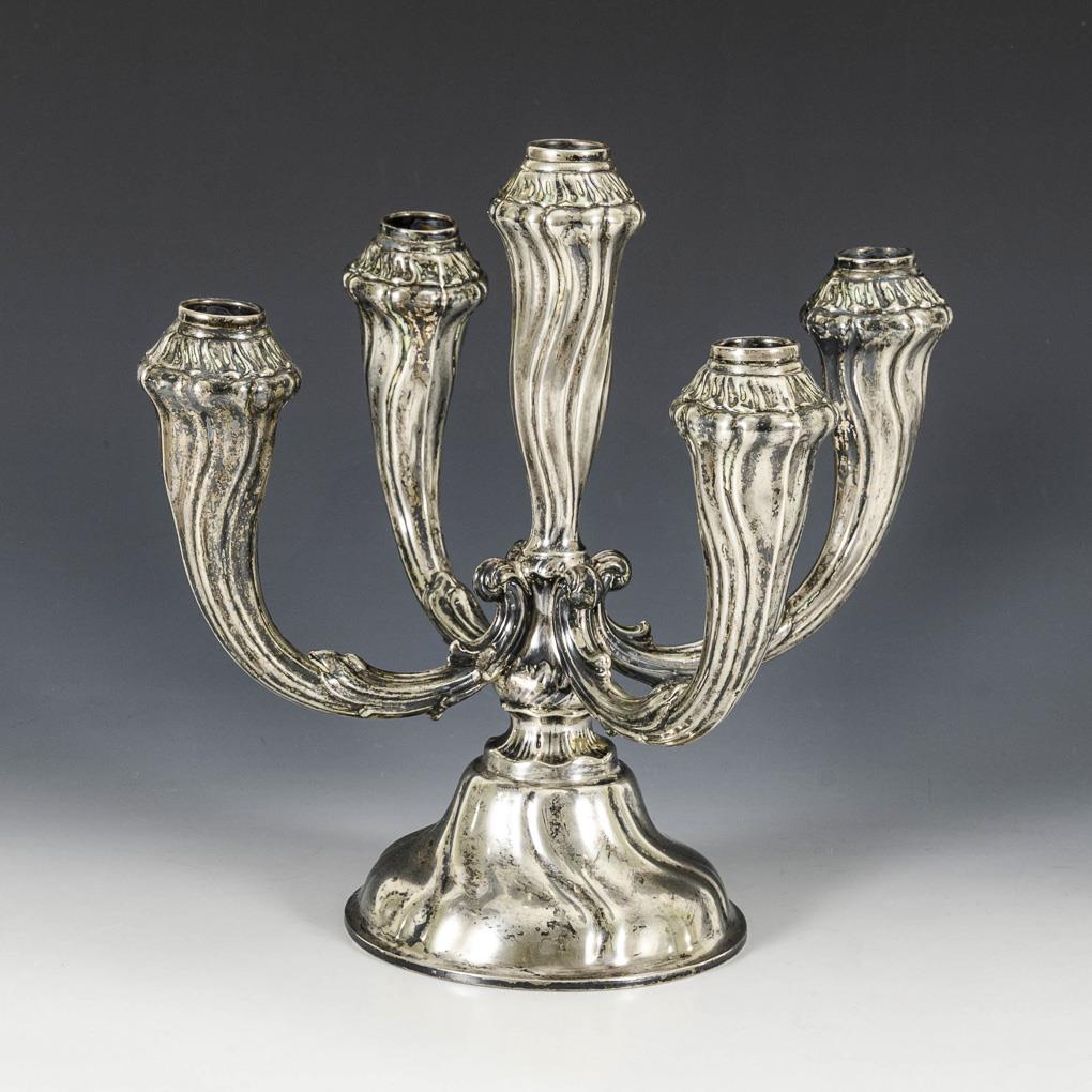 5-flammiger Art-déco-Leuchter. Gebrüder Kühn, Schwäbisch Gmünd.