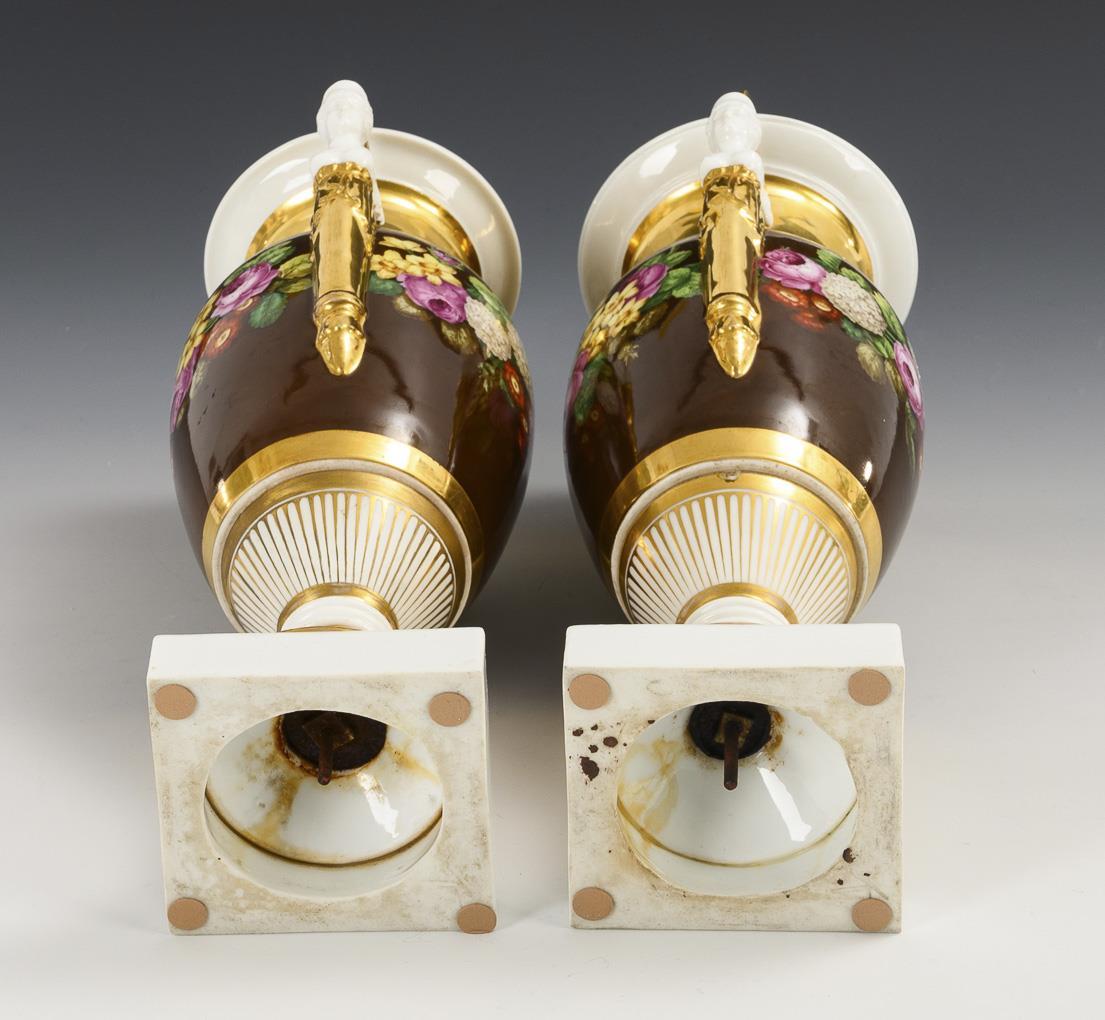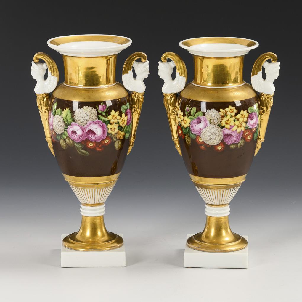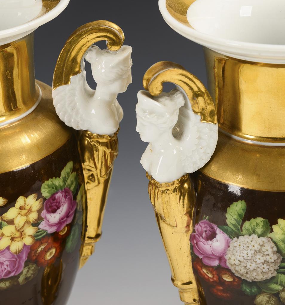 Paar Amphorenvasen mit Blumenmalerei.