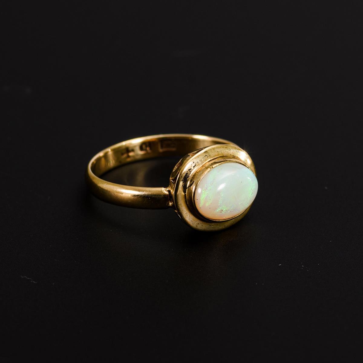 Feiner Cabochon in offener Zargenfassung, zwischen mittlerer Schiene.