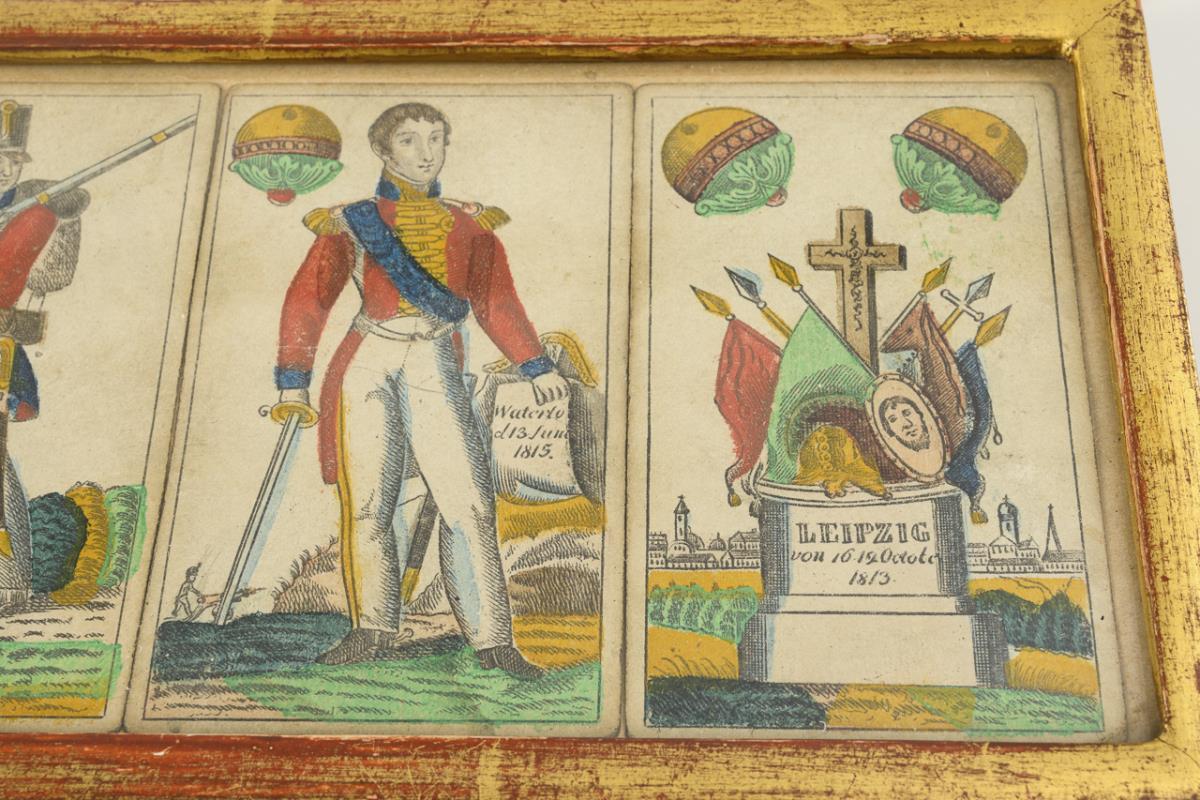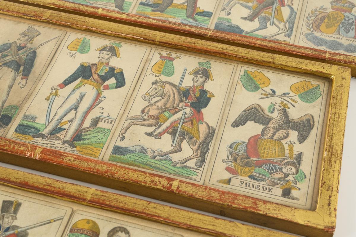 Sie befinden sich hier: Startseite Kategorien Spielzeug 30 seltene, gerahmte Biedermeier-Spielkarten zu den Befreiungskriegen