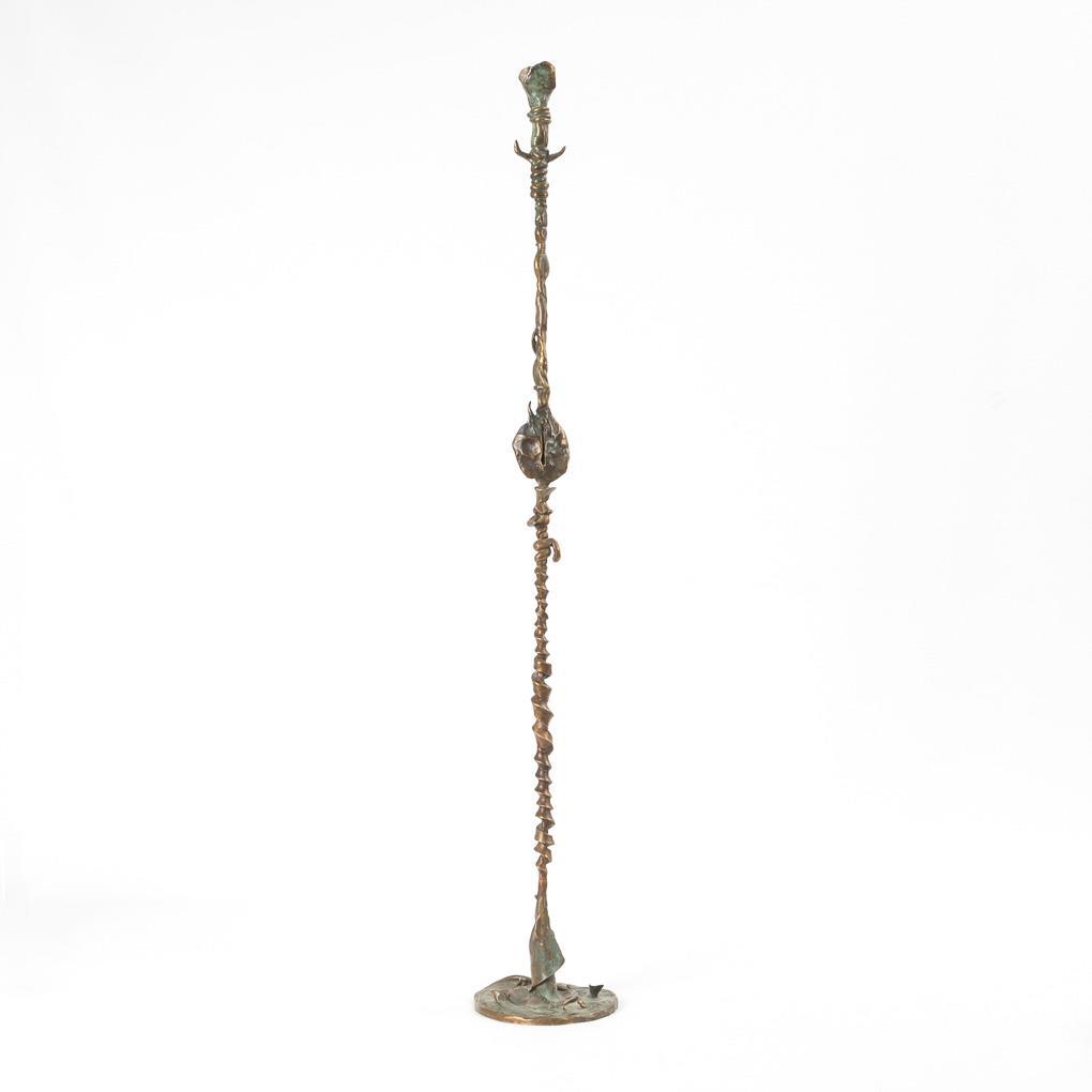 Bronze hellbraun und grünlich changierend patiniert. Bezeichnet und datiert "91", Gießermarke Ara-Kunstreproduktionen mit Zählung "30/150". H 112 cm. 4,0 kg.