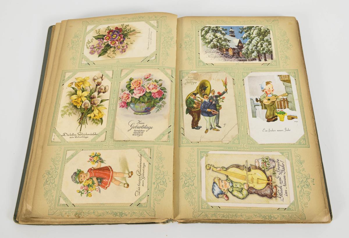 Postkartenalbum mit verschiedenen Motiven