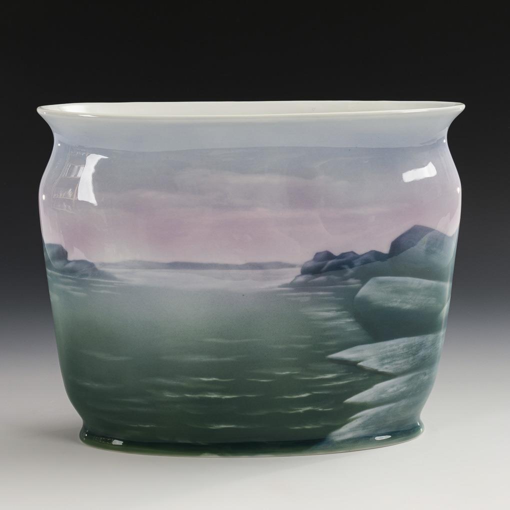 Große Baluster-Plattvase mit der Darstellung eines auf einer Eissscholle im Polarmeer stehenden Eisbäres.