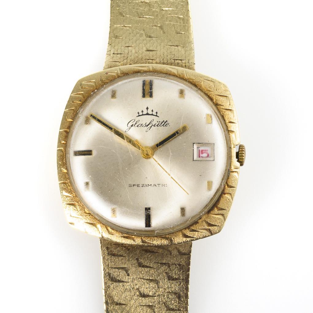 Goldene Herrenarmbanduhr "Spezimatic". VEB Glashütter Uhrenbetriebe.