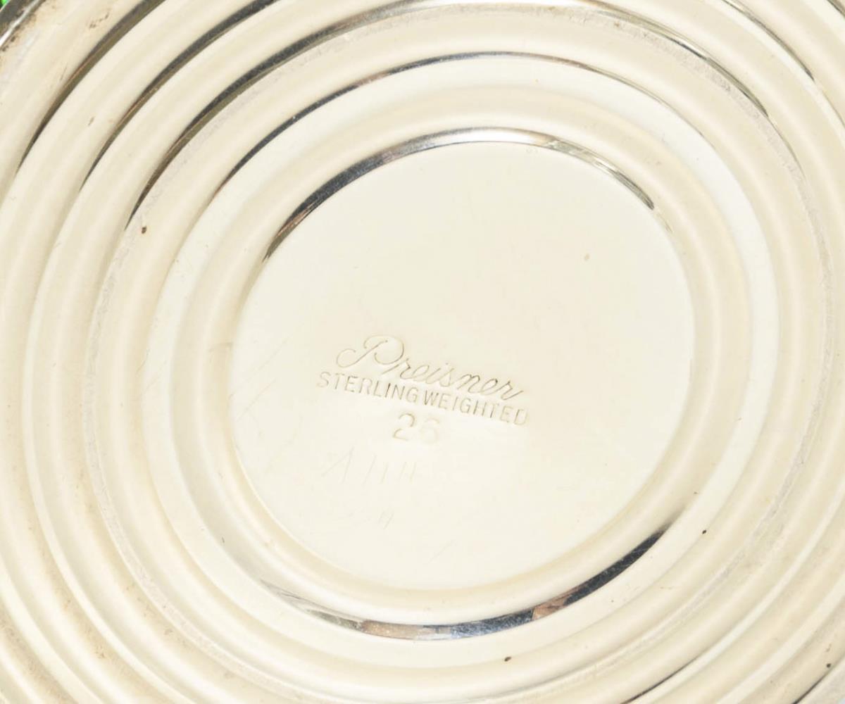 Sterlingsilber, Glas. Beide beschwert.