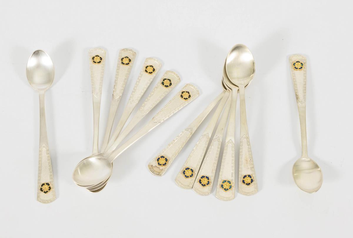 12 koreanische Silberlöffelchen in 2 Samtetuis.