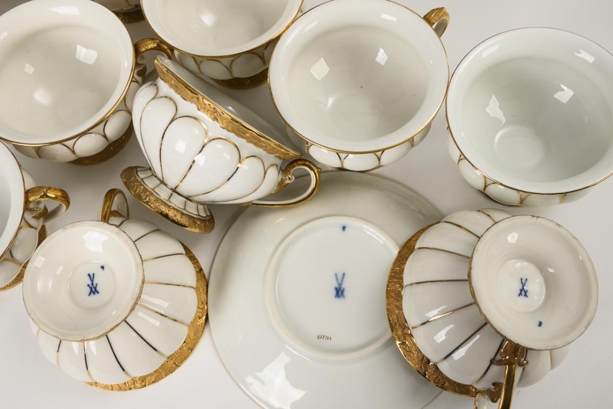 Weiß mit Goldstaffage und -bronzierung.