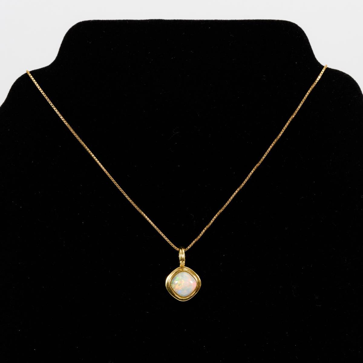 Anhänger mit Kristall-Opal an Kette.