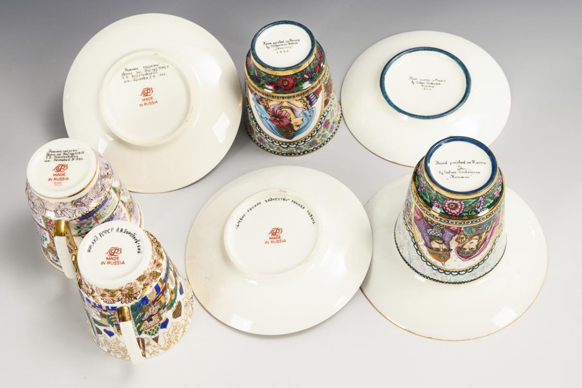 4 russische Tassen mit Untertassen. Lomonossow.