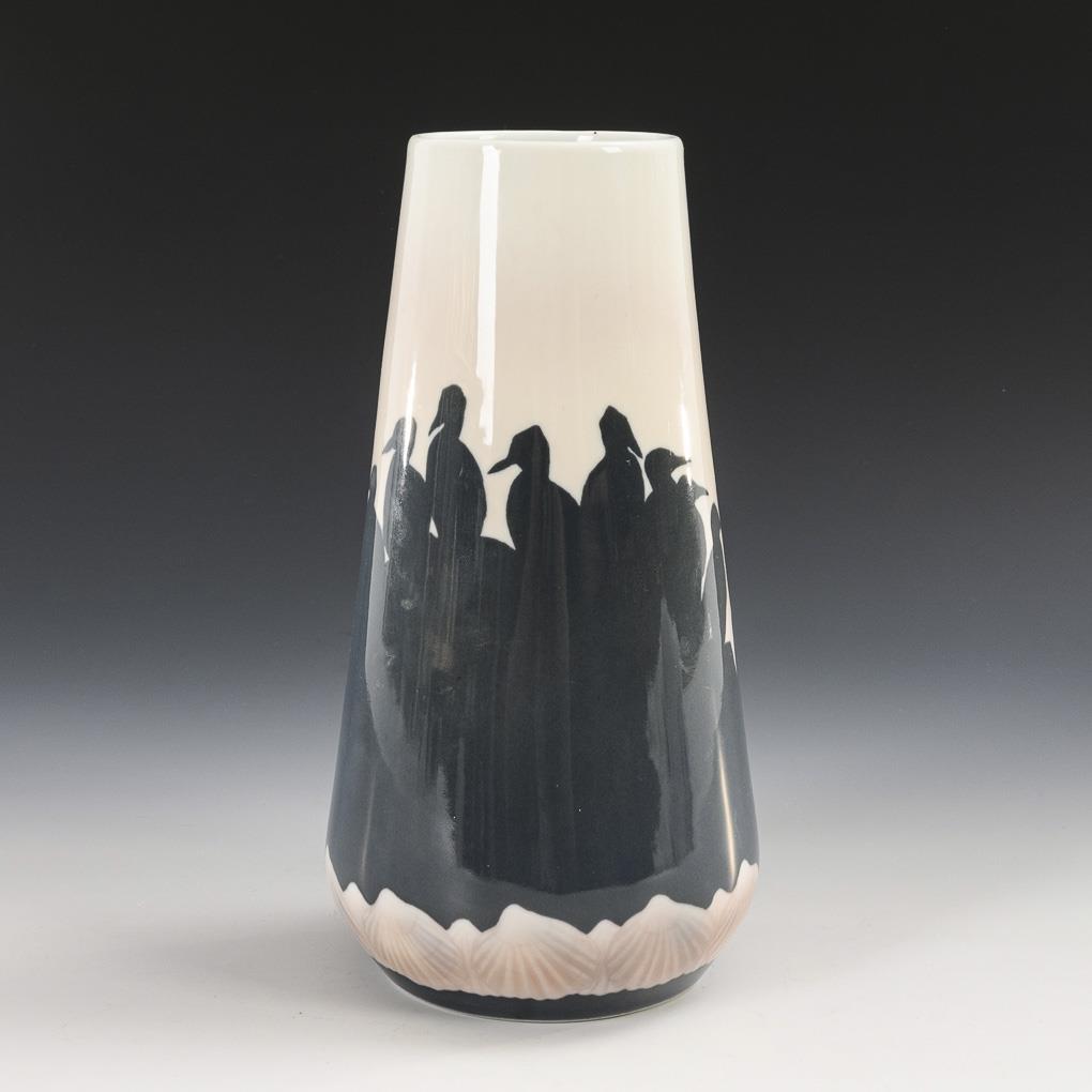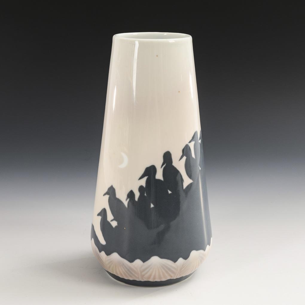 Jugendstil-Vase mit Pinguindekor | siehe Nachtrag. Porsgrund.