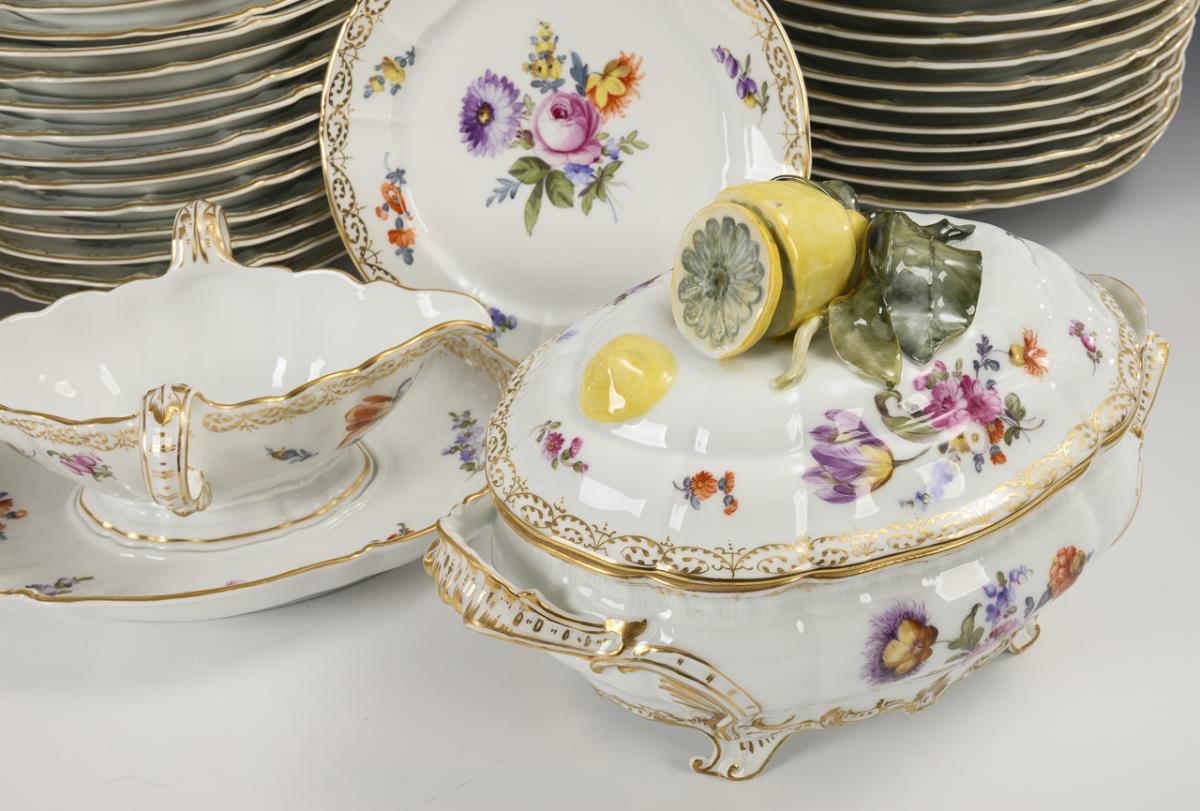 Umfangreiches Speiseservice mit Blumenmalerei. Nymphenburg.
