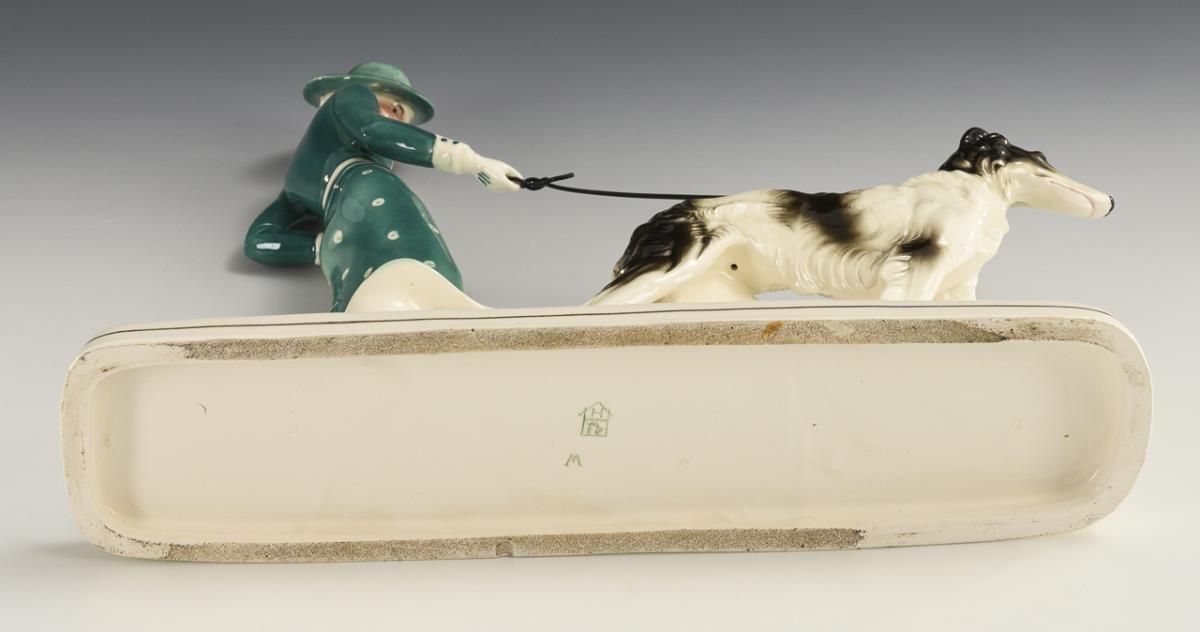 Art-déco-Figurengruppe: Frau mit Windhund. Hertwig, Katzhütte.