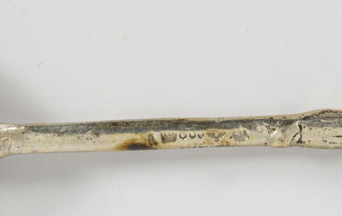 Kleine Löffelchen mit verschiedenen Musikerdarstellungen. In blauem Originaletui. Leichte Gebrauchsspuren.