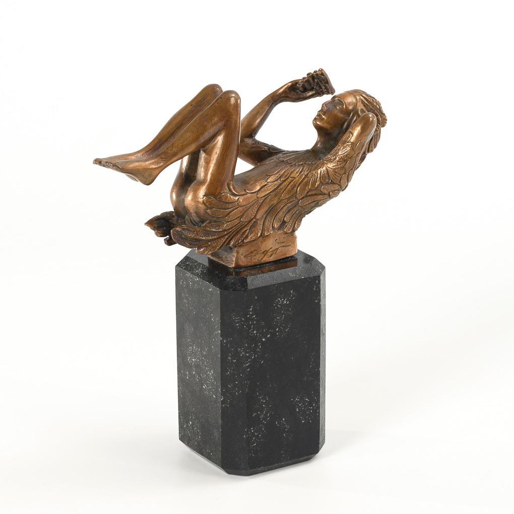 Metallguss verkupfert, Diabas-Sockel. Bezeichnet mit Zählung "110/7500". H 7,5 / 15,5 cm.