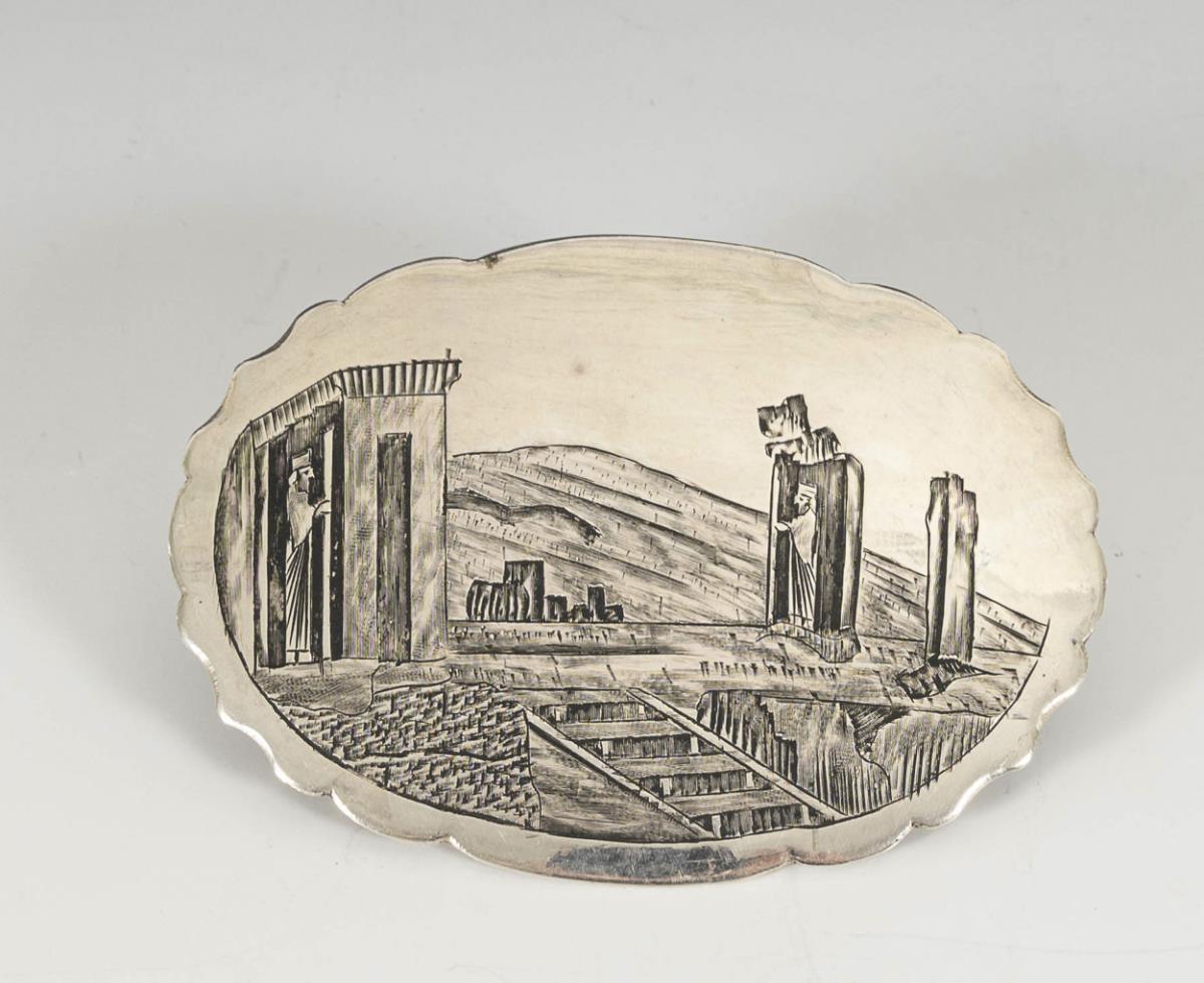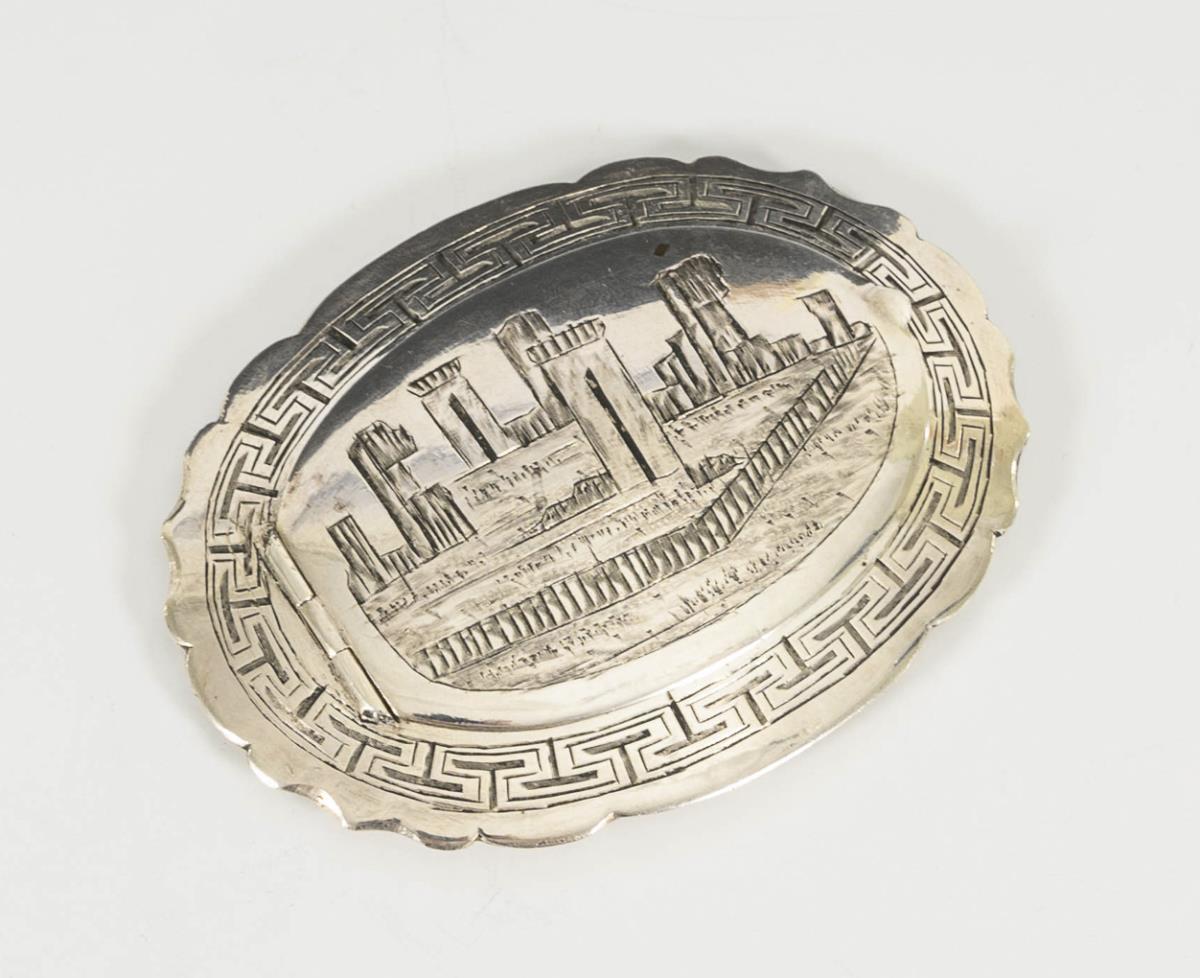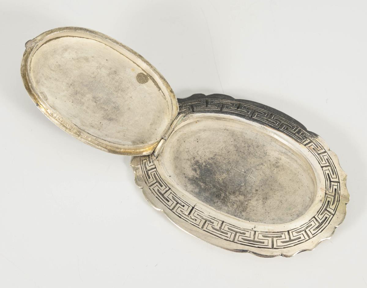 Flache Dose mit geschwärzten Gravuren in russischer Art.