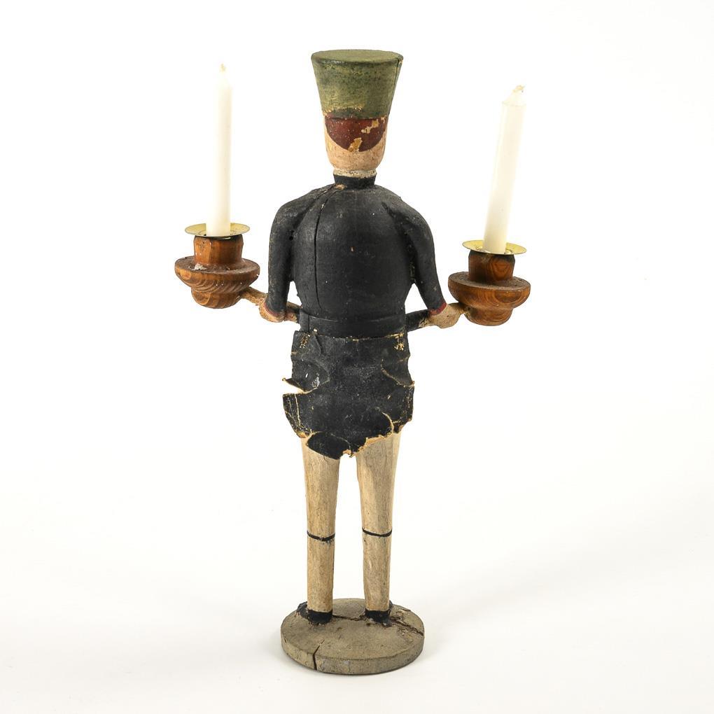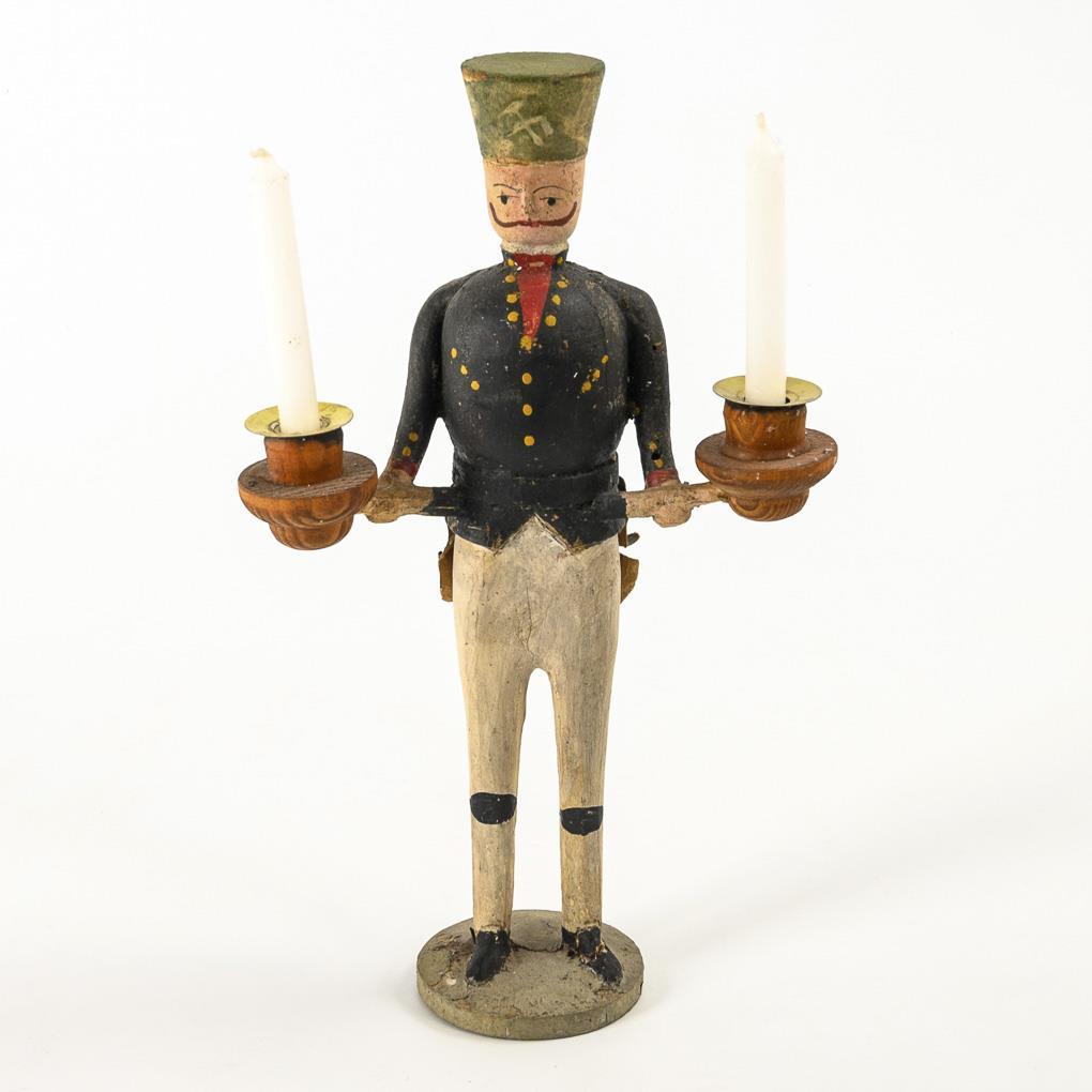 Alter Bergmannsleuchter mit Brotteigarmen, Erzgebirge.