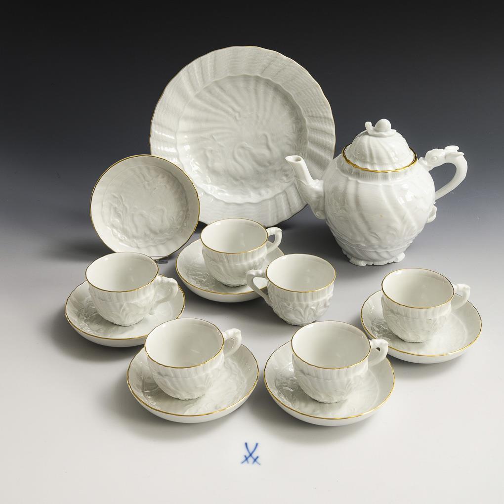 14 Porzellane mit Schwanenservicedekor. Meissen.