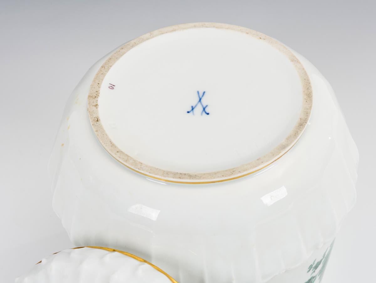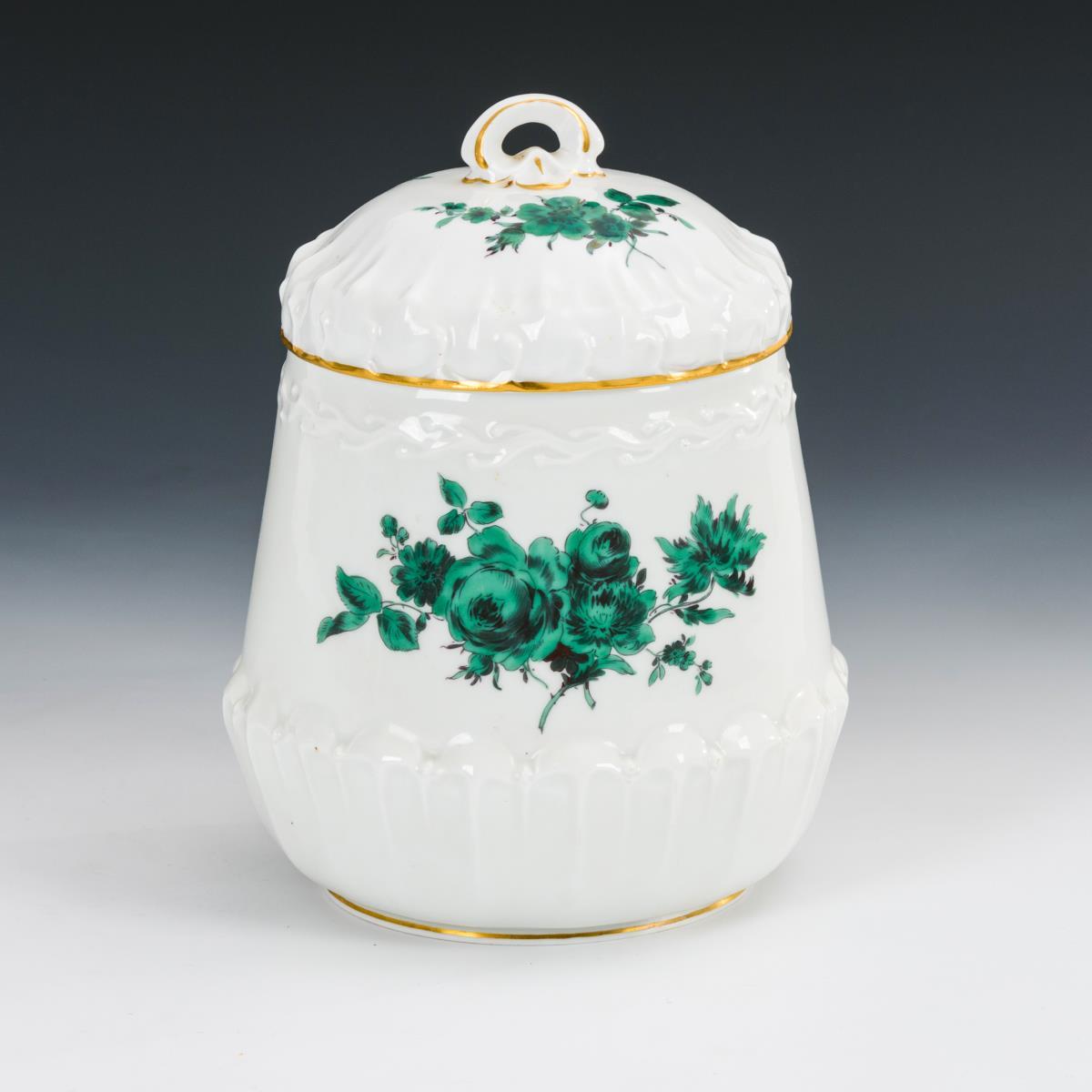 Dose mit kupfergrüner Blumenmalerei. Meissen.