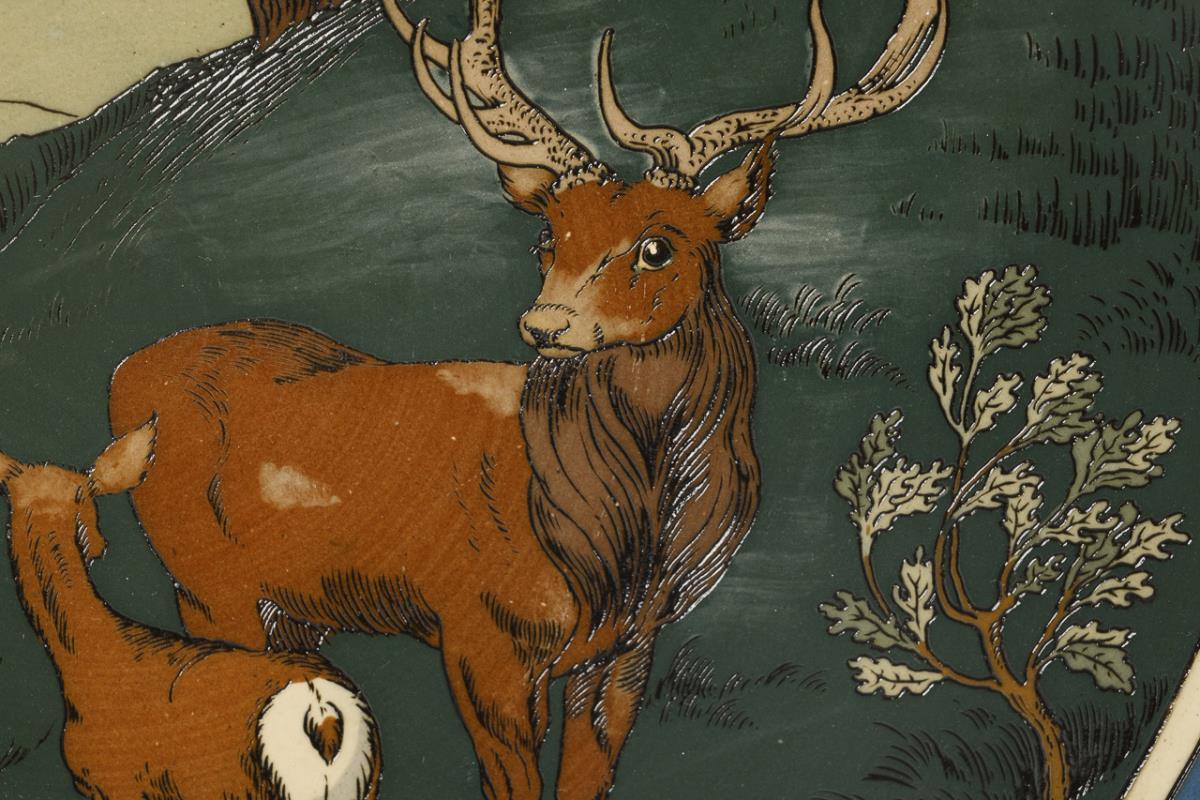 Jugendstil-Wandteller mit Rotwild in Landschaft. Villeroy & Boch.