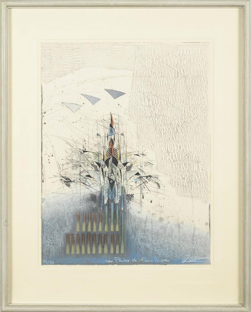 Mischtechnik, Aquatinta Radierung. Frankreich. Unten rechts undeutlich signiert. 84/99.