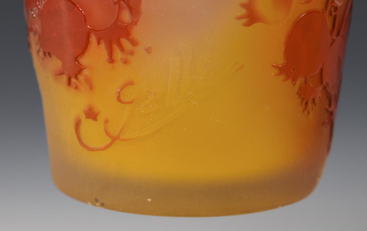 Farbloses Glas mit opalgelbem Innenfang und rotem Überfang. H 12,5 cm.