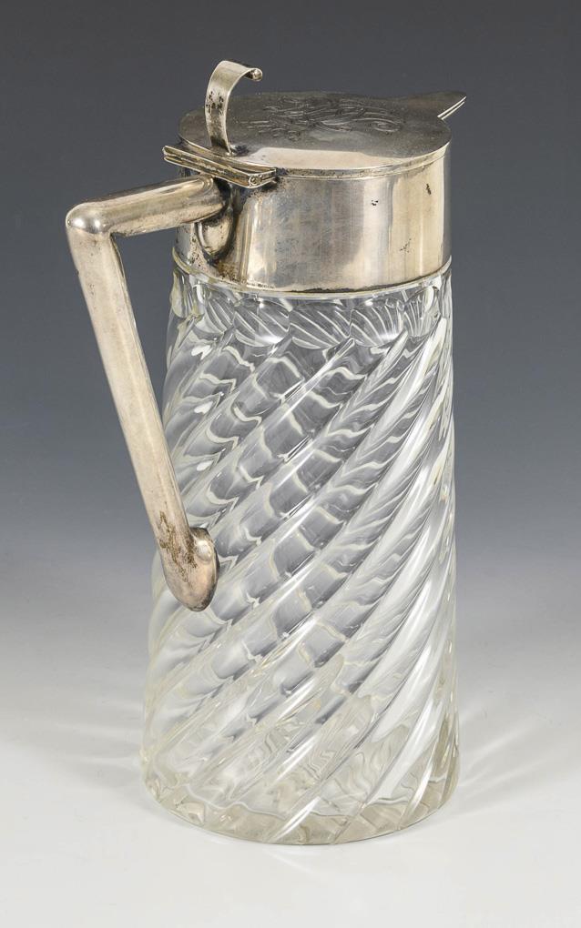 Karaffe mit Silbermontierung und Adelsmonogramm. Wilhelm Binder, Schwäbisch Gmünd.