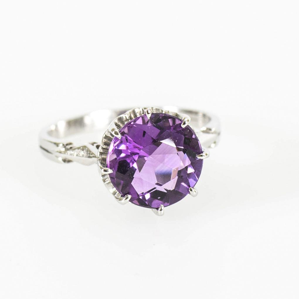 Chatongefasster Amethyst zwischen zarter Schiene.