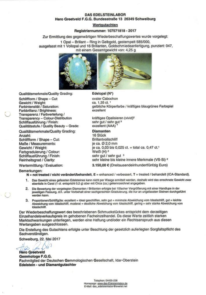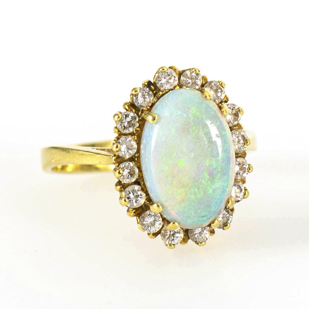 Opal ca. 1,35 ct. Brillanten zus. ca. 0,47 ct. (H/vs-si). Ringgröße 52,5. 4,25g.