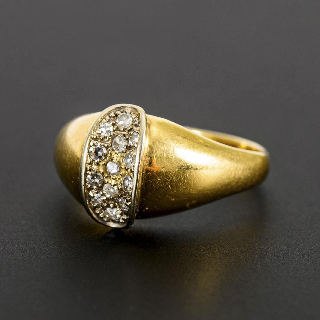 Gelbgold 585 geprüft, undeutlich gepunzt. Brillanten zus. ca. 0,20 ct. Ringgröße 63. 5,5 g.