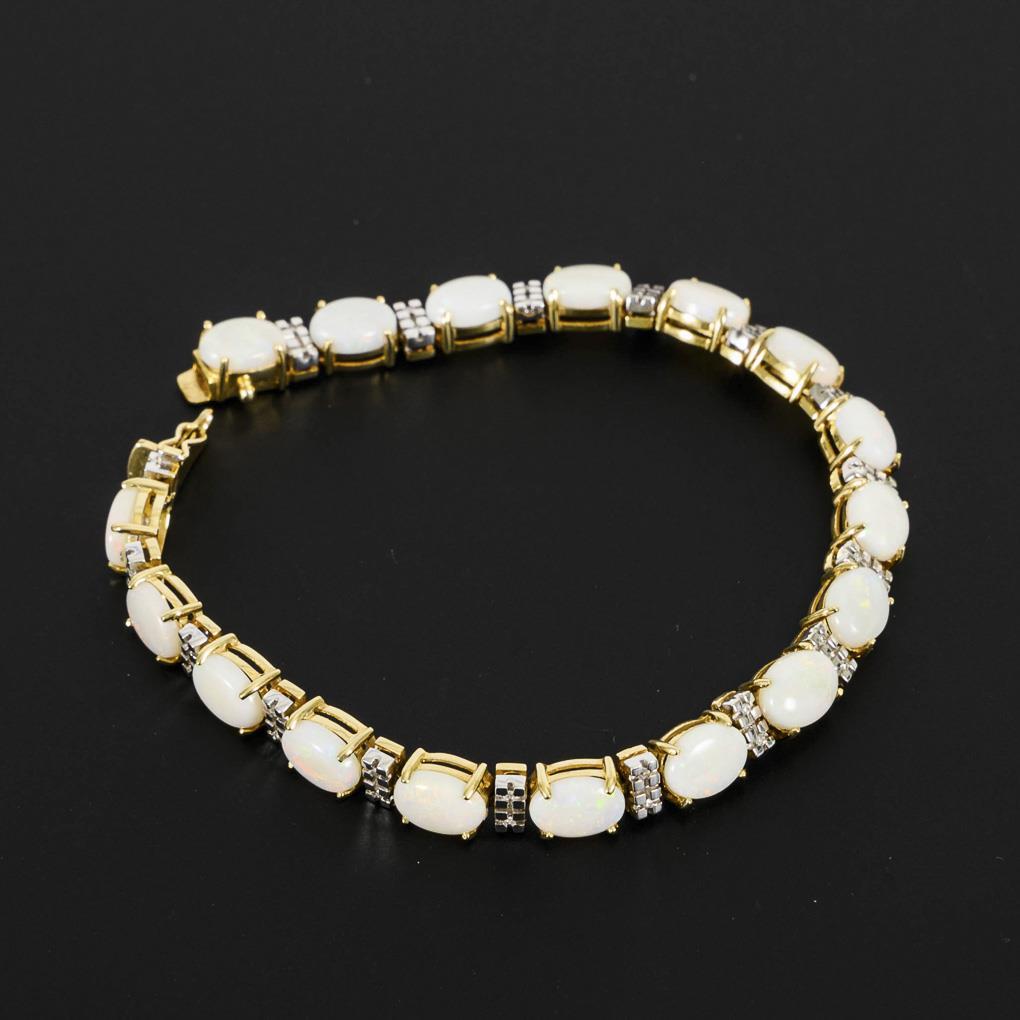 2-farbiges Armband mit 17 Opalcabochons. Kastenschloss mit Achtersicherung.