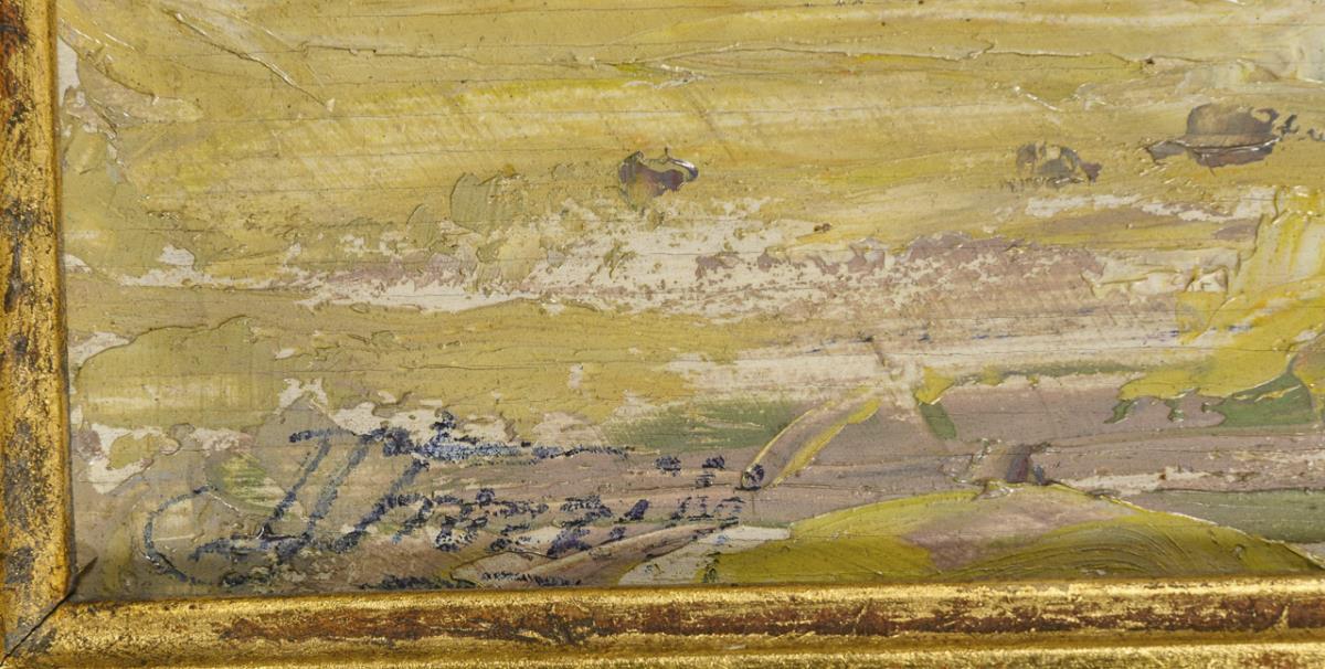 Öl/Sperrholz. Links unten signiert, verso signiert/betitelt.