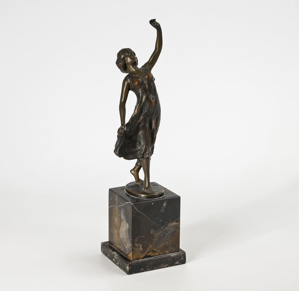 Bronze patiniert, schwarzer Marmor-Sockel. Bezeichnet. H 25,5 / 36 cm.