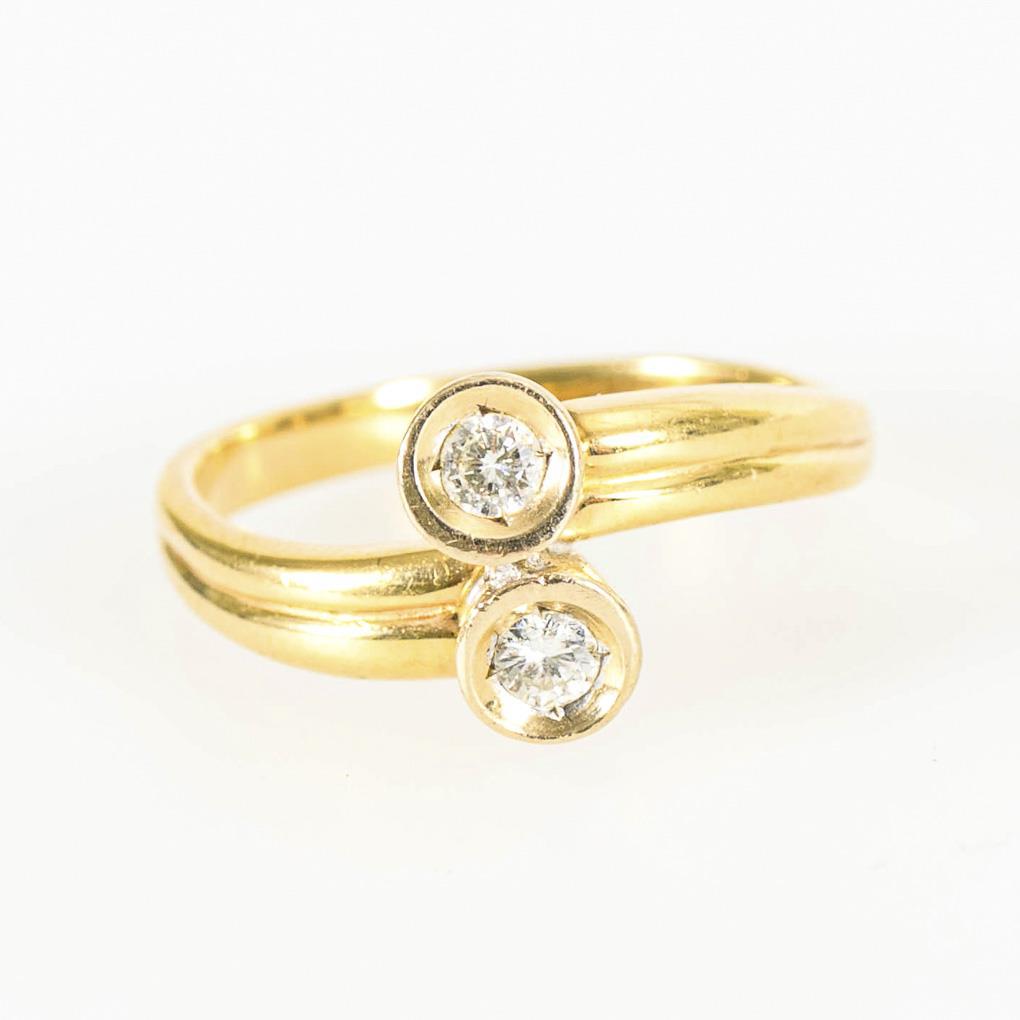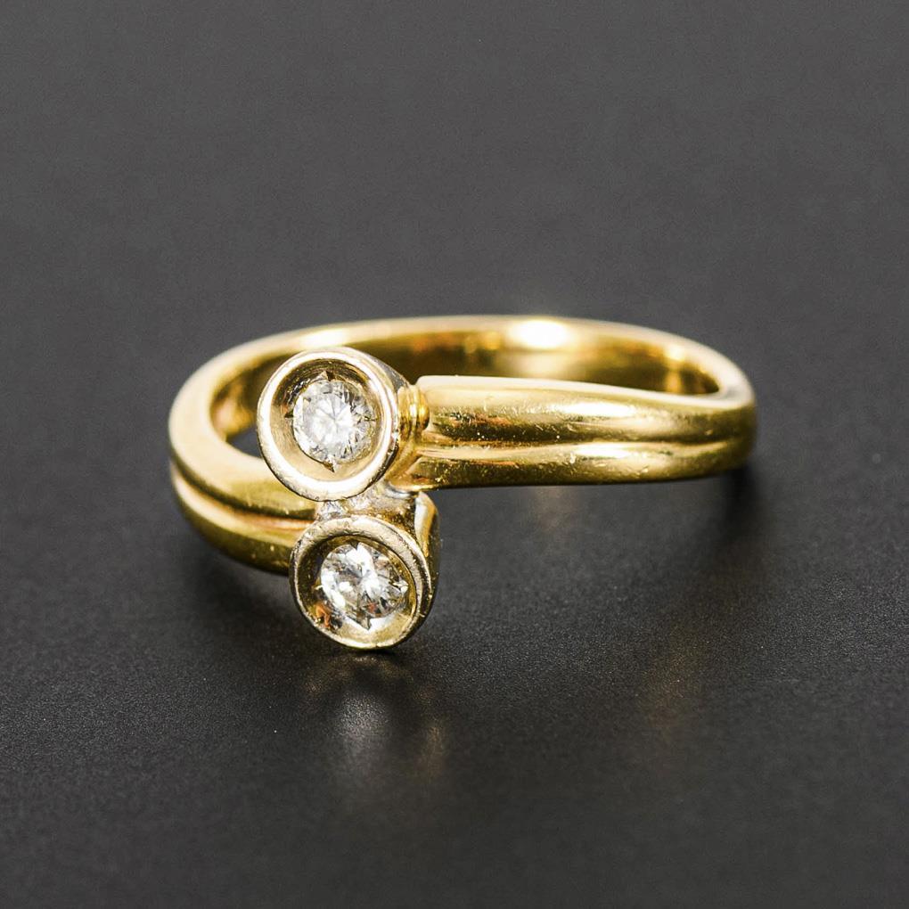 Zwei Brillanten in Zargenfassung, zwischen mittlerer Schiene.