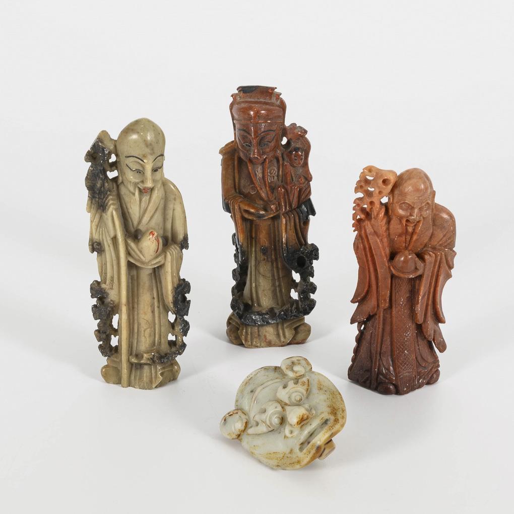 3 Figuren und Gürtelschnalle - Speckstein.