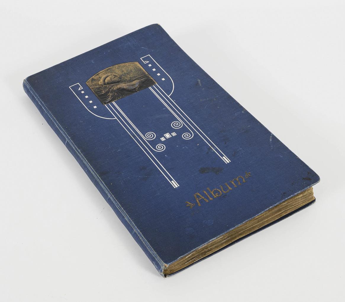Ca. 155 Weihnachts- und 52 Neujahrskarten, dunkelblauer Jugendstileinband.