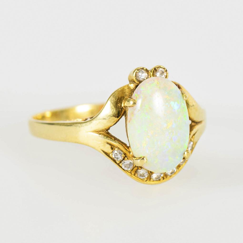 Ring mit Opal und Diamanten.