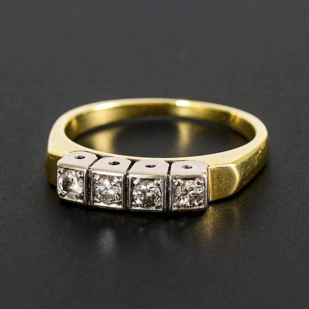 4 in Weißgold zargengefasste Brillanten zwischen schmaler Schiene.
