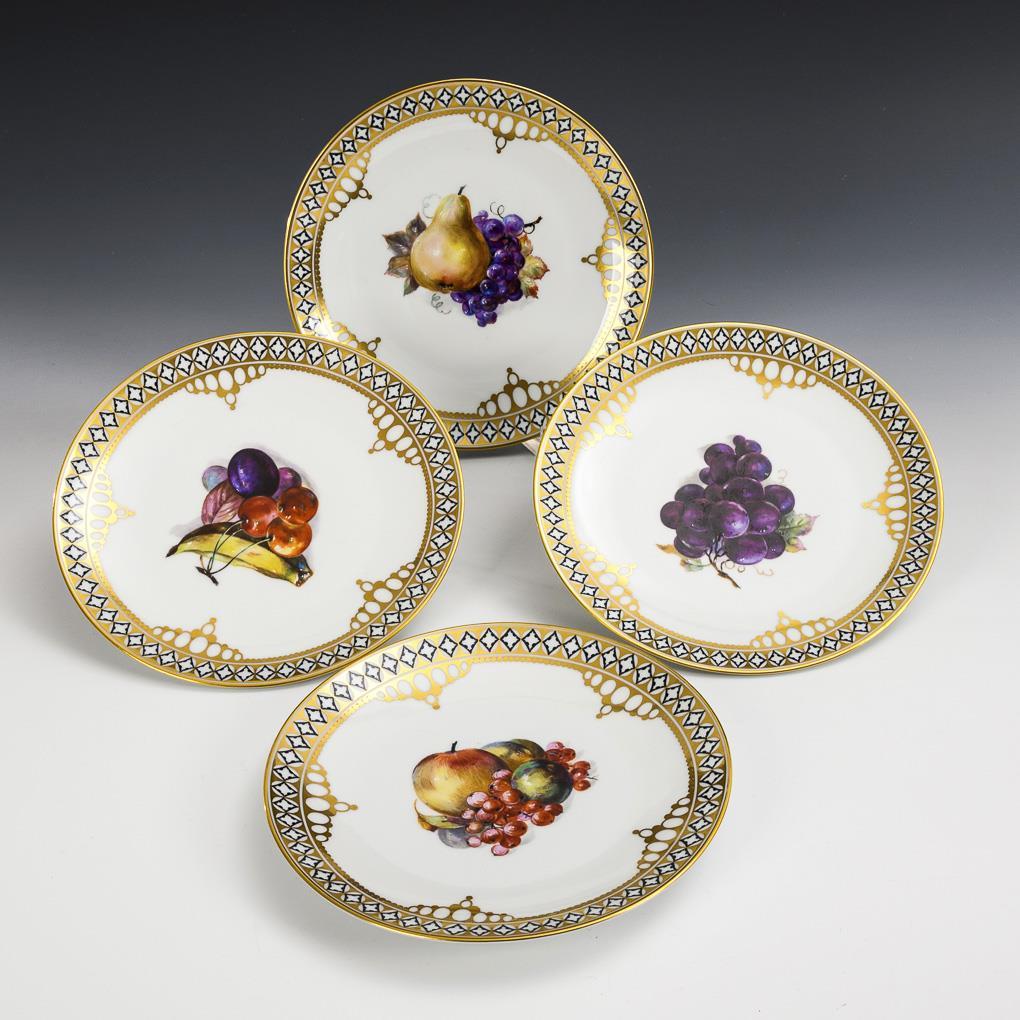 4 Art-déco-Teller mit Fruchtmalerei. Thomas.