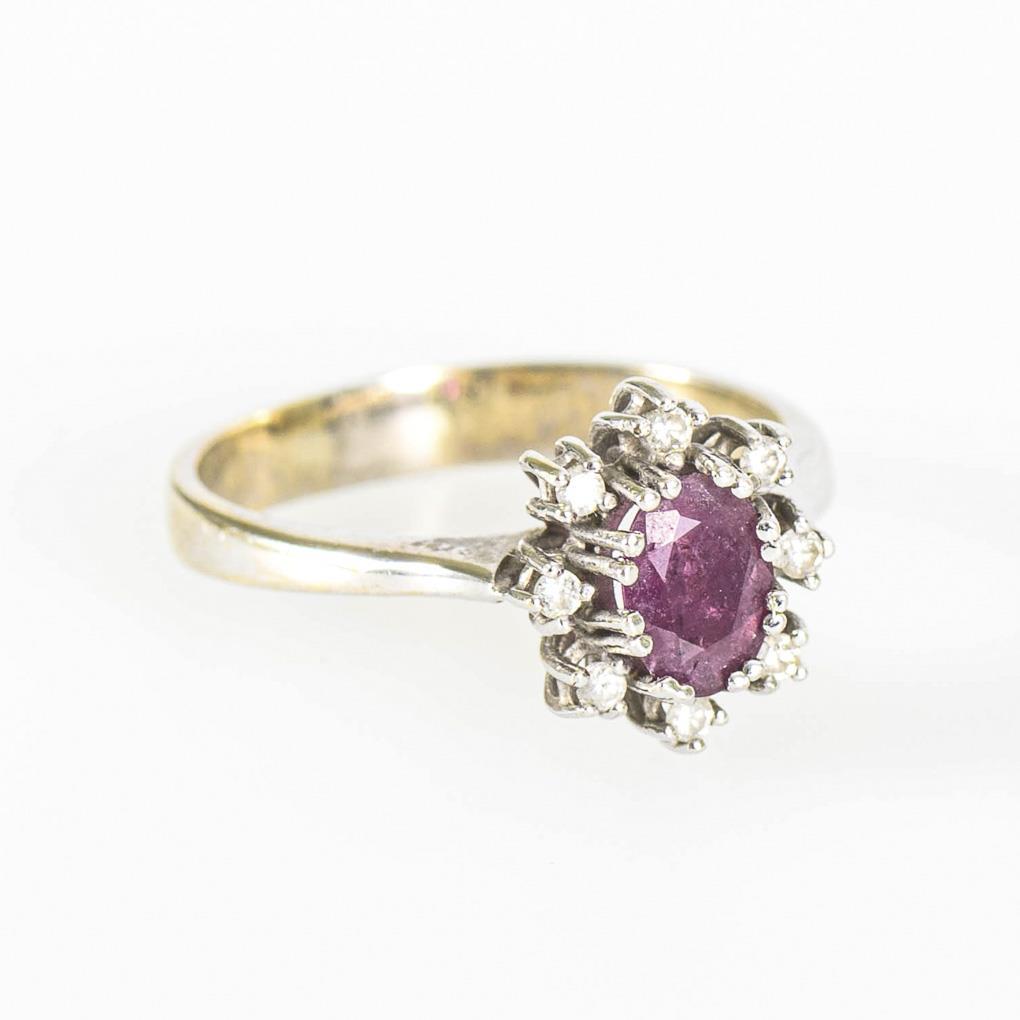 Krappengefasster Rubin, umringt von 8 kleinen Diamanten, zwischen mittlerer Schiene.
