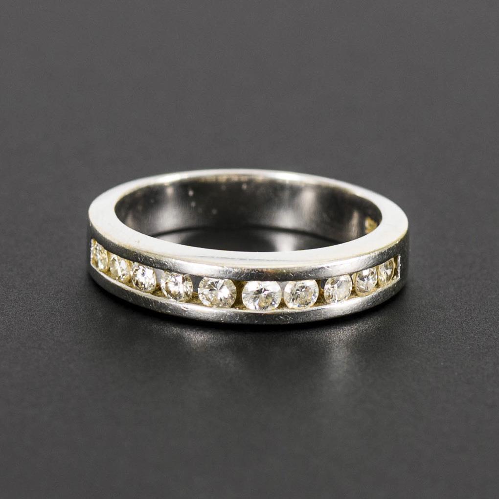 Mittlerer Reif mit 10 kleinen, in Fadenfassung eingelassenen Brillanten.