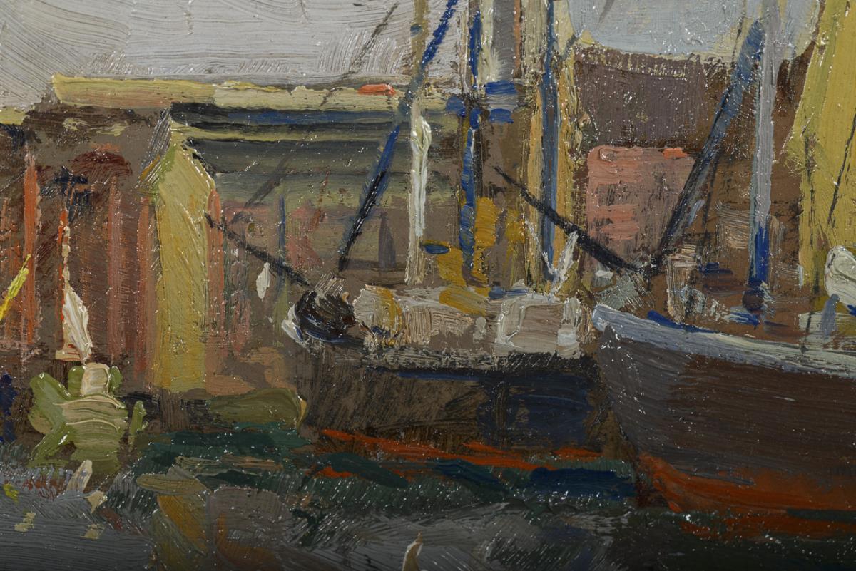 Öl/Malkarton. Links unten monogrammiert.
