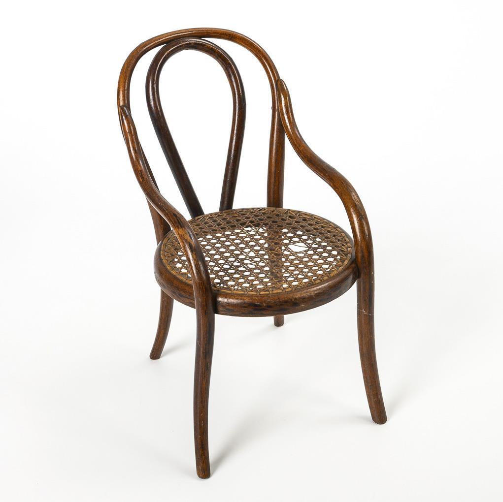 Kleiner Kaffeehaus-Stuhl mit Sitzgeflecht. Sitzfläche mit kleinen Defekten.