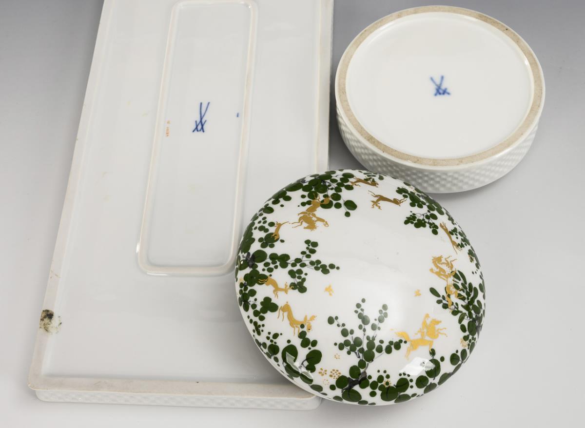 Tablett und Dose aus einem Rauchservice. Meissen.