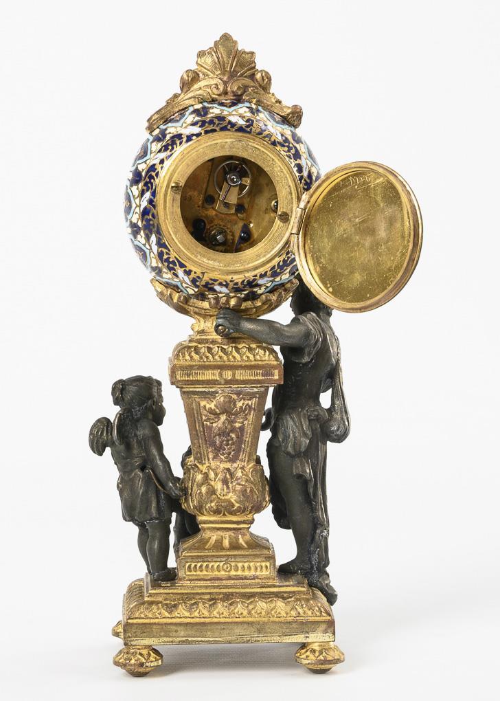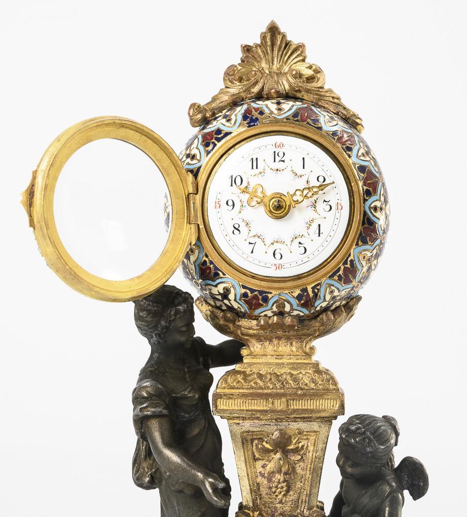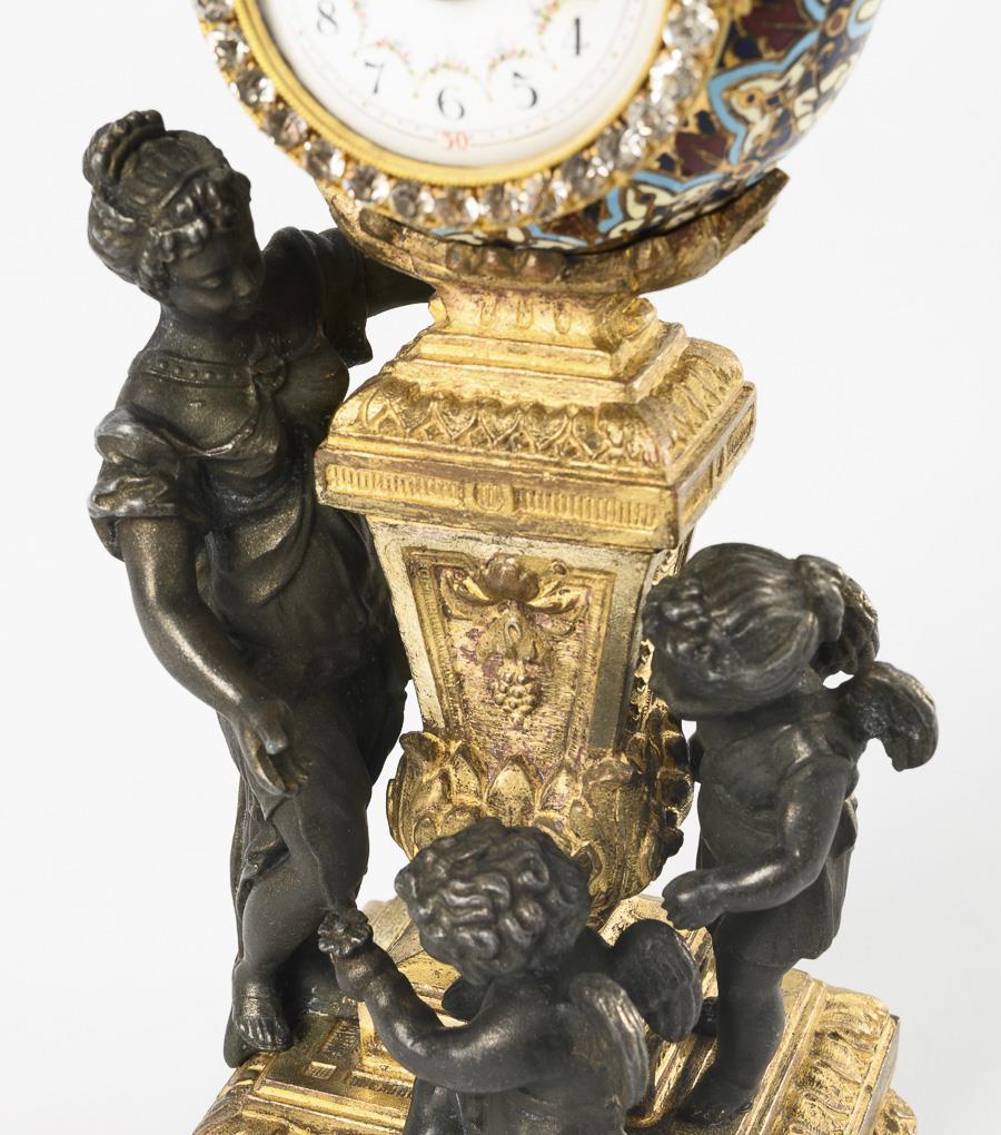 Sie befinden sich hier: Startseite Kategorien Uhren Französische Cloisonné-Schreibtischuhr mit antiker Frauenfigur und Putten