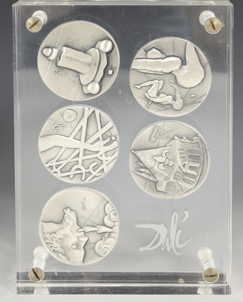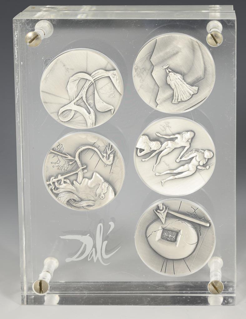 Salvador Dalí: 10 Silbermedaillen "Die zehn Gebote" in 2 Rahmen.