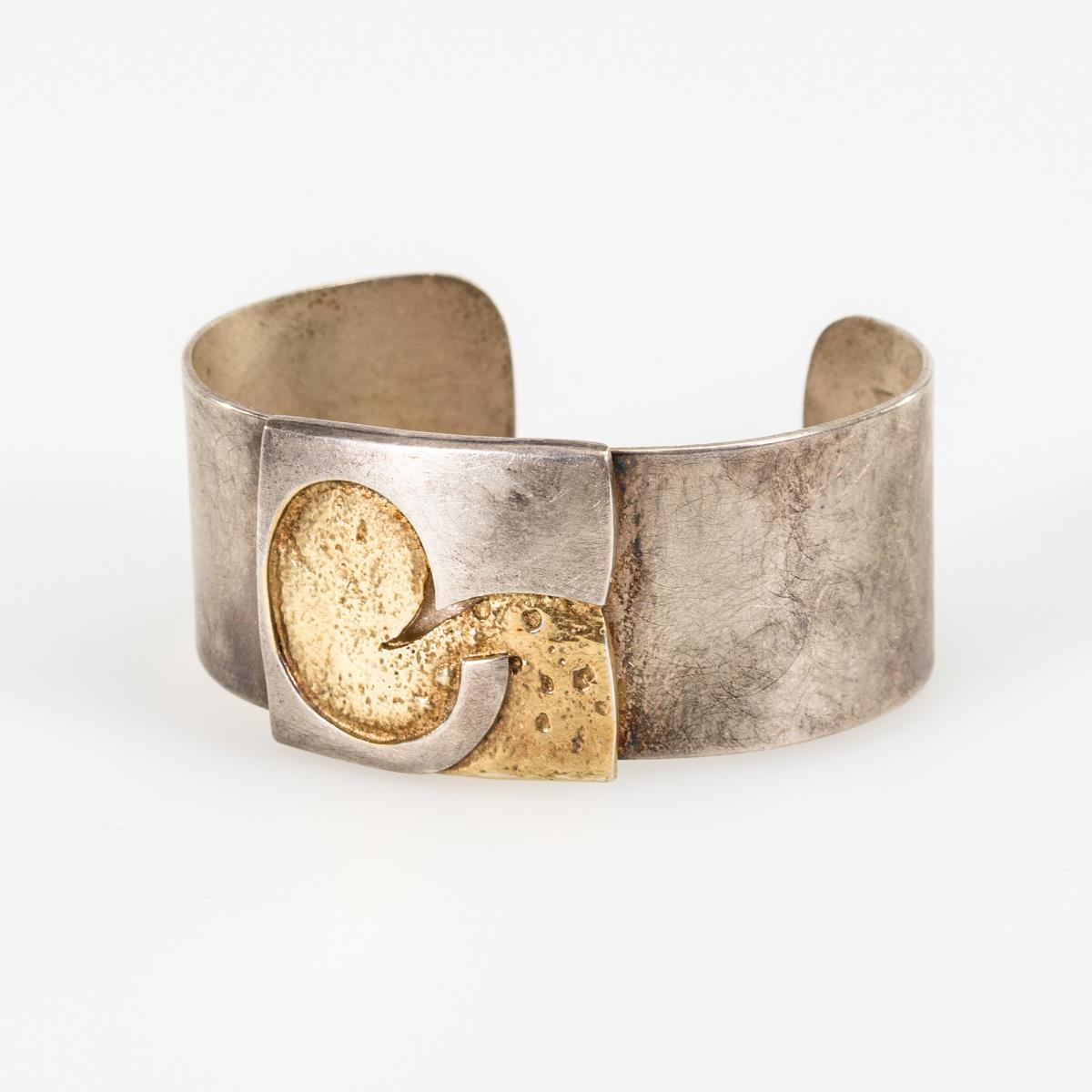 Breiter, offener Reif mit quadratischer, partiell vergoldeter, montierter Platte.