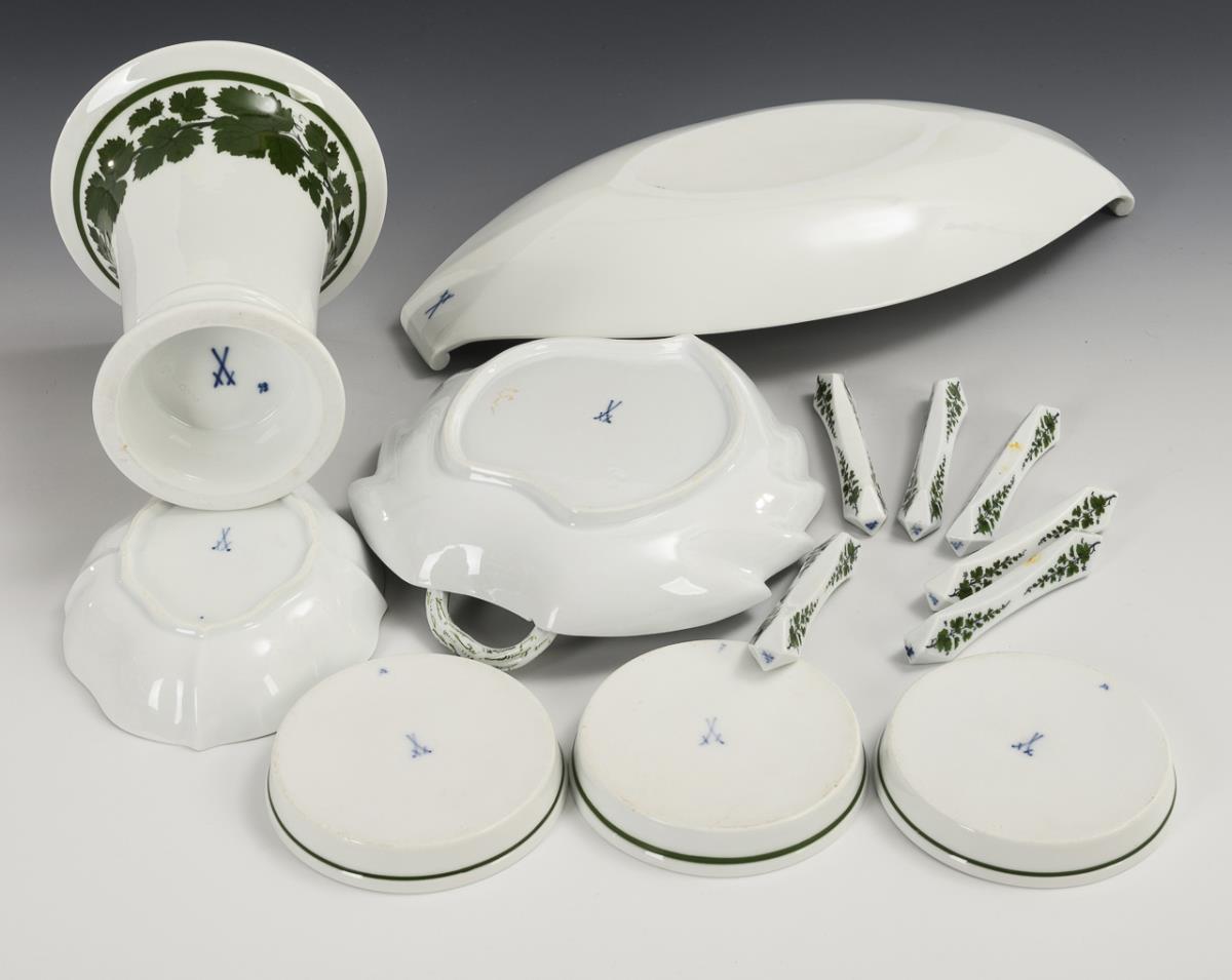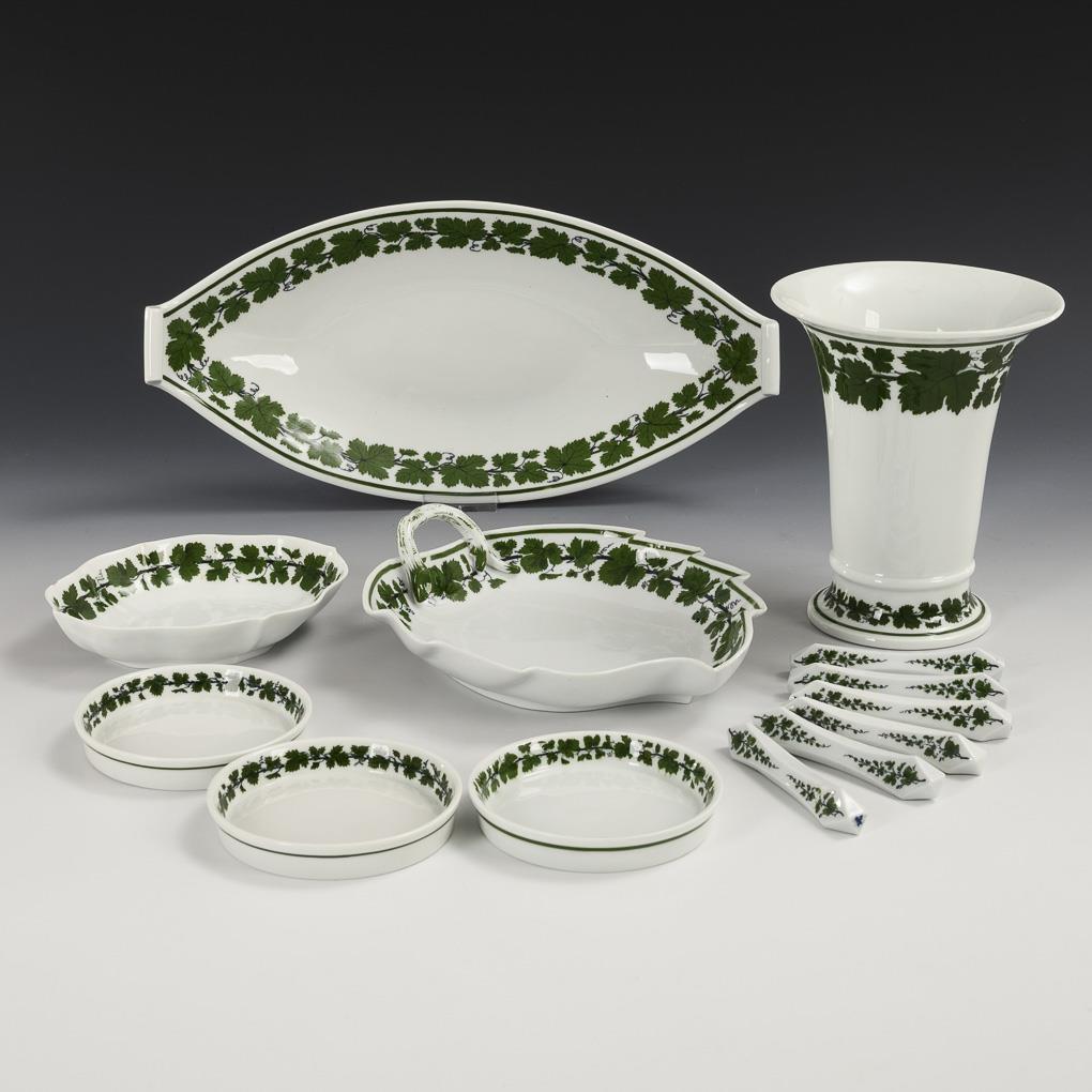 13 Porzellane mit Weinlaubdekor. Meissen.